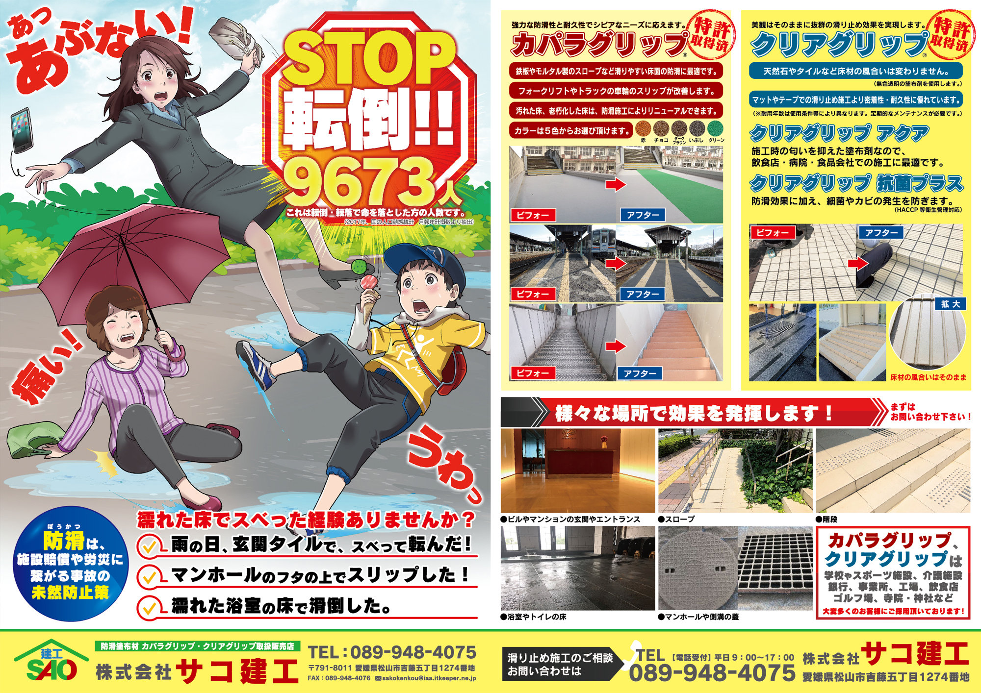 床や階段、浴室、マンホールなどでの滑り止め工事を行います。 「カパラグリップ®」「クリアグリップ®」を用いて安心で安全な加工を行います。